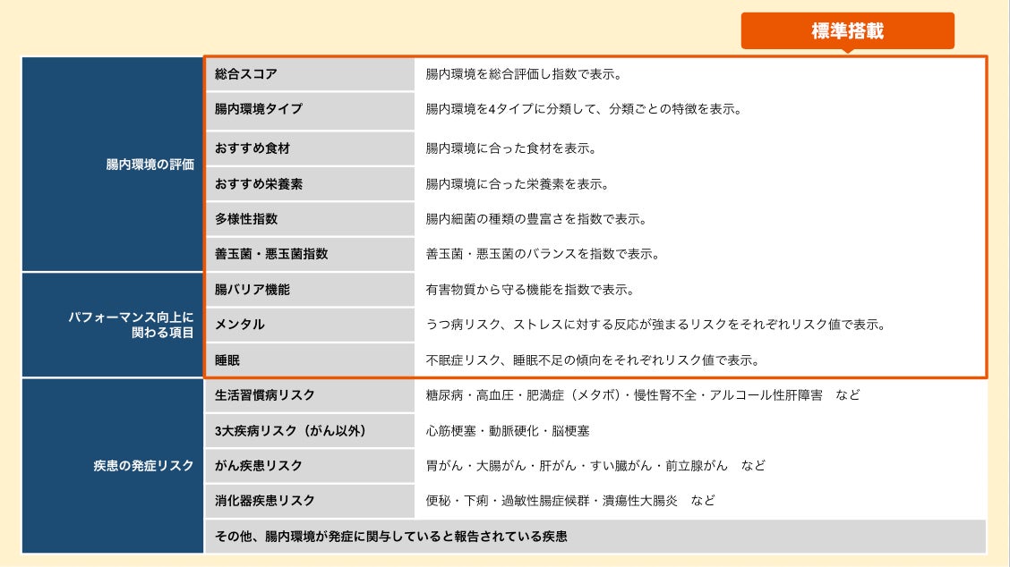 当検査ではプレゼンティーイズムに関わる項目だけでなく、腸内環境の評価、疾患発症リスクまで幅広くわかります。