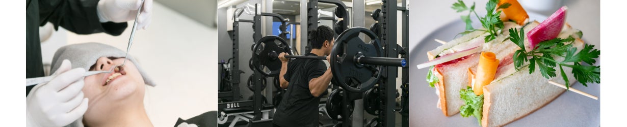 幅広い提案から、それぞれの専門医が揃う歯科、医学的観点でプロアスリートをも支えるトレーナーによる指導が受けられるジム、管理栄養士による食生活指導や食事のバランスを整えることができるカフェを内蔵。