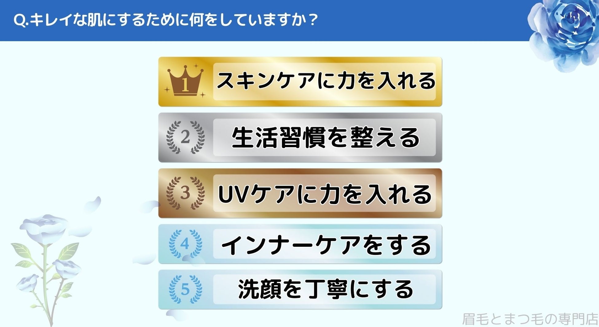 そこで今回の調査では、キレイな肌にするためにやっていることについてアンケート調査をしました。ぜひ、参考にしてみてください。
