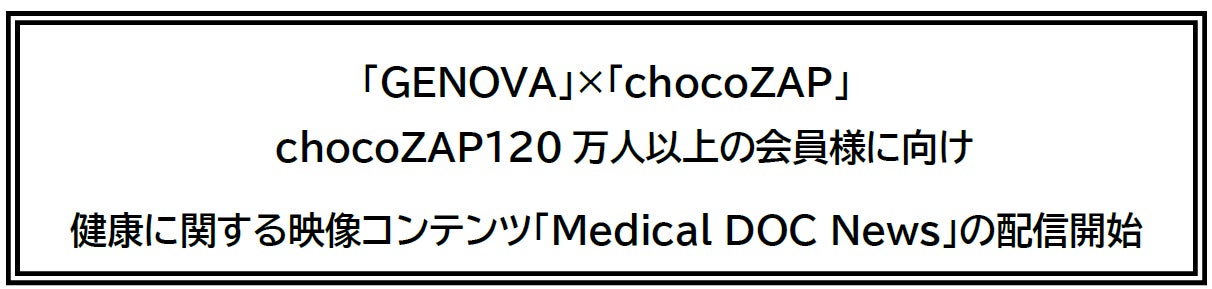 RIZAP グループ株式会社(代表取締役社長 瀬戸 健、本社:東京都新宿区)の連結子会社であるRIZAP株式会社のコンビニジム「chocoZAP(チョコザップ)」の新事業「chocoZAP Partners(チョコザップ パートナーズ)」は、株式会社GENOVA(代表取締役社長 平瀨 智樹、本社:東京都渋谷区)と連携し、健康に関する映像コンテンツ「Medical DOC News」の配信を2024年6月中めどに開始いたします。