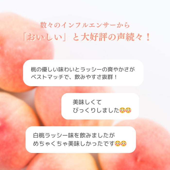 国産の白桃果汁パウダーを使用した、夏にぴったりの本格フレーバー