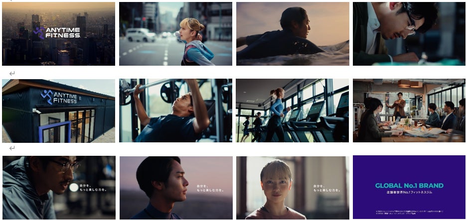 新CMは、2024年6月1日(土)から全国でTV放送を開始します。新CMでは、夢や目標に向けて自分の力で前を向こうとしている人がエニタイムフィットネスを利用し、なりたい自分の理想をかなえるために必要な心身の力を手に入れる様子が描かれています。CMを通して、エニタイムフィットネスは、「体をただ鍛える場所」から、前向きに生きていくための自己実現をサポートするための場所である「ライフモチベートプレイス」であることを伝えて行きます。なお、この新CMや広告ビジュアルは、TV放送のほか、店頭やWEB、SNSでも展開してまいります。