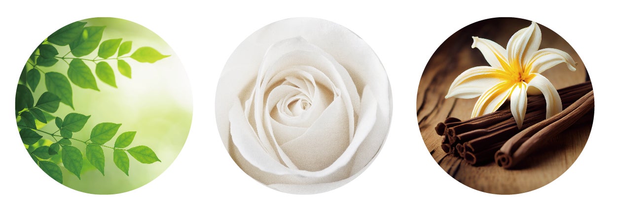 クリーンで透明感あるなかにもひねりのあるローズがのぞく、くせになる香り。