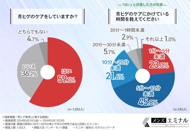 はじめに、「青ヒゲのケアをしていますか?」と質問したところ、約6割の方が『はい(59.1%)』と回答しました。