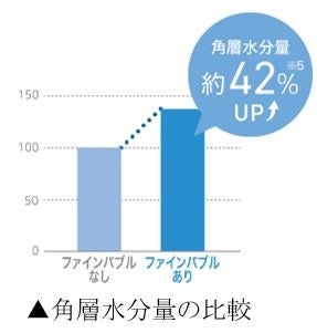 ※5:20代女性8名で実施。「ミストクレンズモード」(温度40±1℃)を手の甲に1分間あて、使用前後の角層水分量を測定。ウルトラファインバブルなし条件での肌水分増加量を100%としたときの比較(当社調べ)。使用環境(季節・温度など)や個人差により効果は異なります。