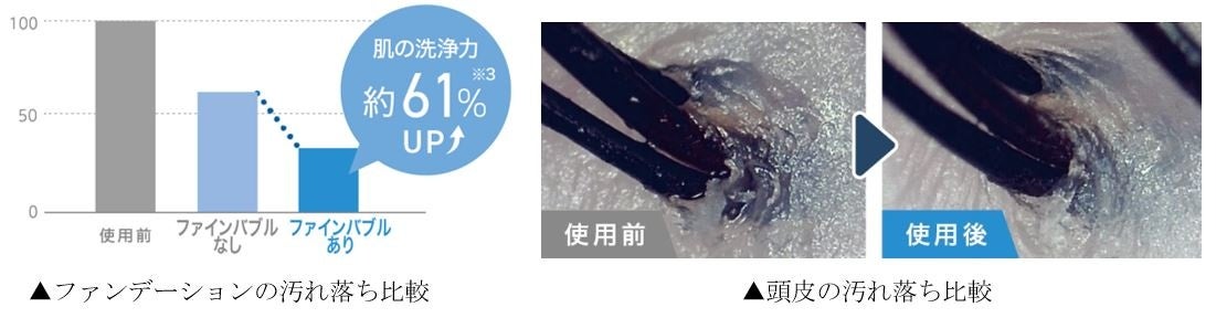 ※4:20代男性被験者で実施。頭皮汚れのある部位に「バブルクレンズモード」(温度40±1℃)を3分間あて、使用前後の頭皮汚れを撮影(当社調べ)。使用環境(季節・温度など)や個人差により効果は異なります。