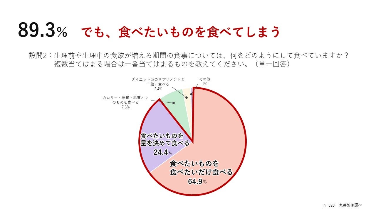 この調査は、生理前になると「食べたい衝動を抑えられない。でも、食べたあとにはいつも後悔する」という調査担当者の経験に基づき設計しています。