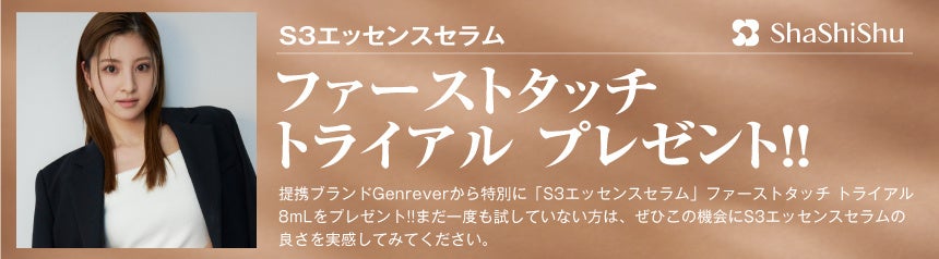 期待を裏切らない、本気の美容液。「S 3エッセンスセラム」ファーストタッチトライアルプレゼントいたします。