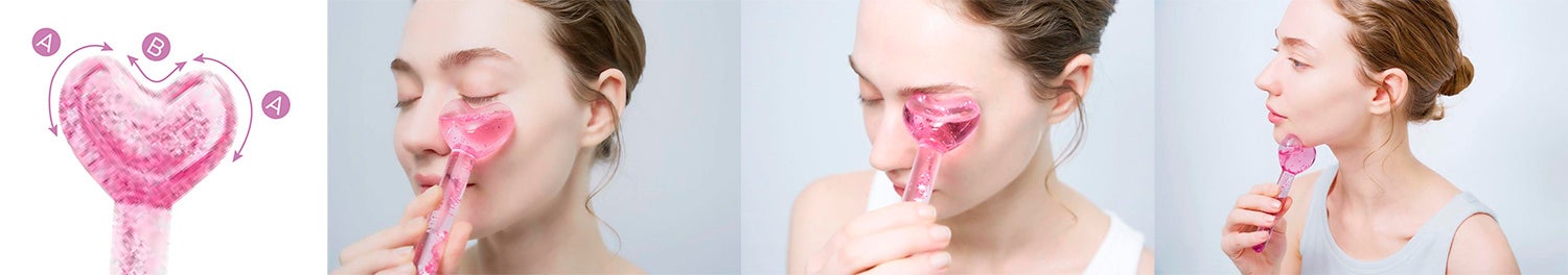 可愛いハートのスティックで気になるまぶたの上や、目の下、フェイスラインをハートの凹凸部分でコリを押し流して血行促進!フェイスマスクを付けた上からのご使用もおすすめです!