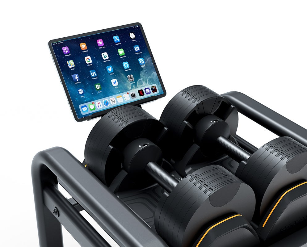 スマートフォンやタブレットをラックに固定して、トレーニングをより楽しく、効果的に行うことができます。