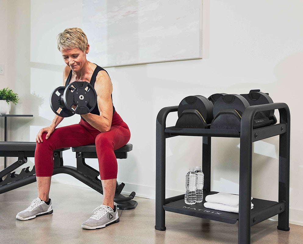 細かな重量調節が可能なMATRIXの可変式ダンベルと収納ラックが発売開始!