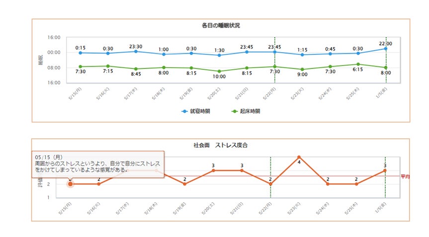 生活リズムや心身の変化を把握し、復職の判断材料に活用できます。