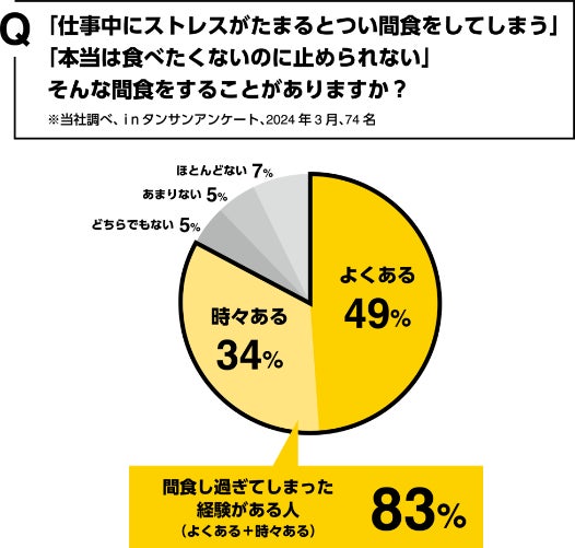 「本当は止めたいのにストレスでついつい食べ過ぎてしまう」、「空腹感が気になって仕事に集中できない」こんなときは、ありませんか?森永製菓が2024年3月に実施した調査(n=74)によると、約8割の人が望まない間食をしていることが分かりました。