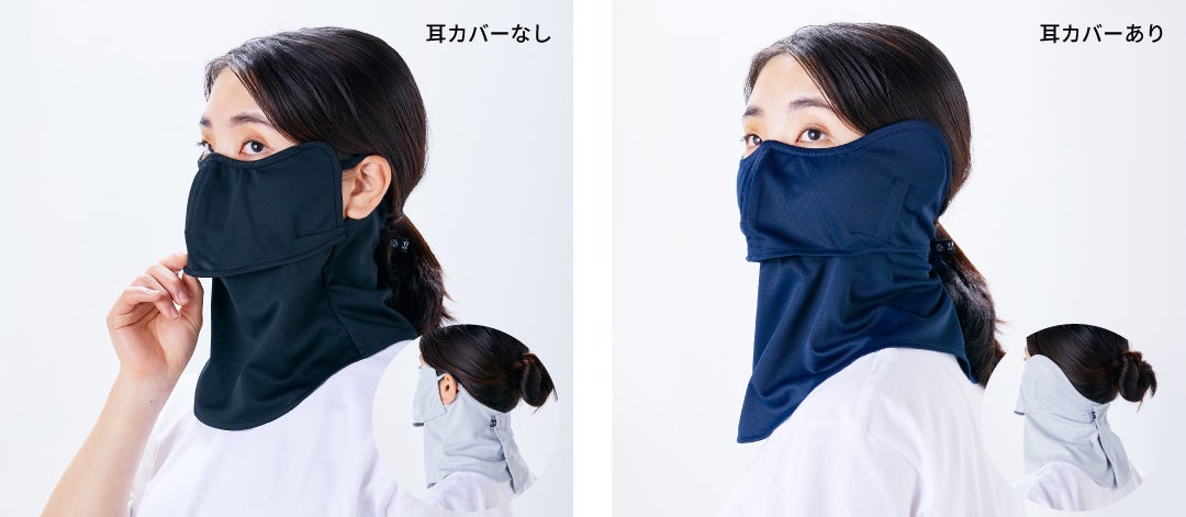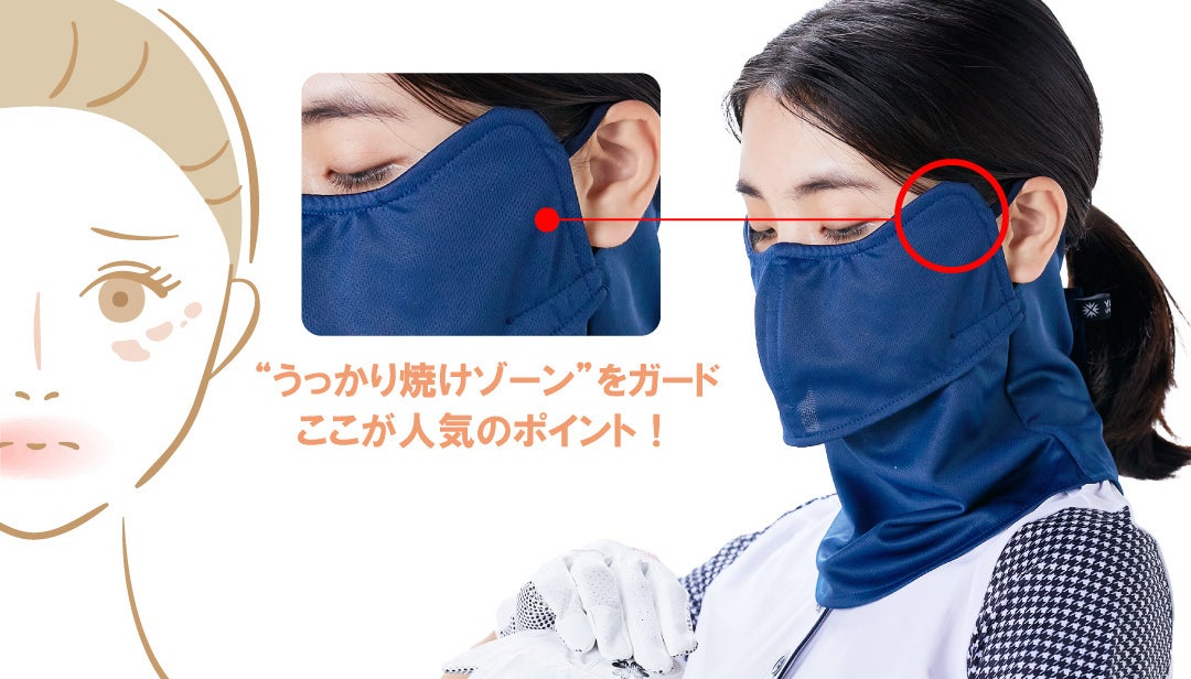 目元から広範囲に日焼けしたくない性能重視のユーザー向け商品です。もっとも日焼けしやすい目部内側が2重になっているのはそのままに、鼻がズレやすかった点を改良し、より安定したフィット感を実現。カラーは従来の2色から、新たに新色ブラックが追加され3色となりさらなる使いやすさを追求しました。