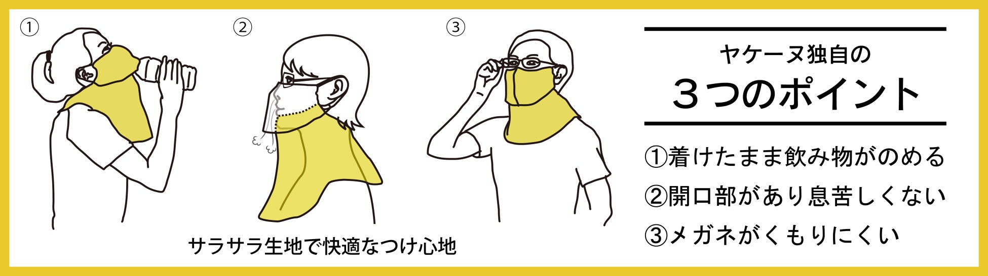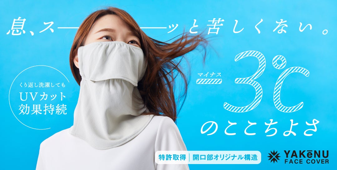 「ヤケーヌ」は日焼け防止を目的としたフェイスカバーで2010年の発売以来、累計販売点数240万点の人気商品です。2020年のコロナ禍以降、息苦しくないマスクとして飛沫防止やマスクエチケットとしてご着用いただく場面もあり、近年は非常に多くのお引き合いをいただいております。昨年は美容にこだわる著名人やYouTuberにも発信頂き、広く認知される様になりました。