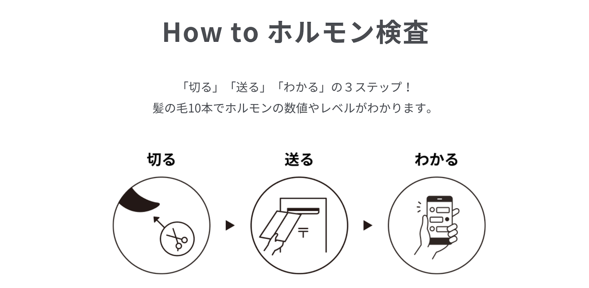 検査は自宅でご自身の髪の毛を根元から10本カットして送るだけ。その後3週間ほどで検査結果がLINEで届きます。