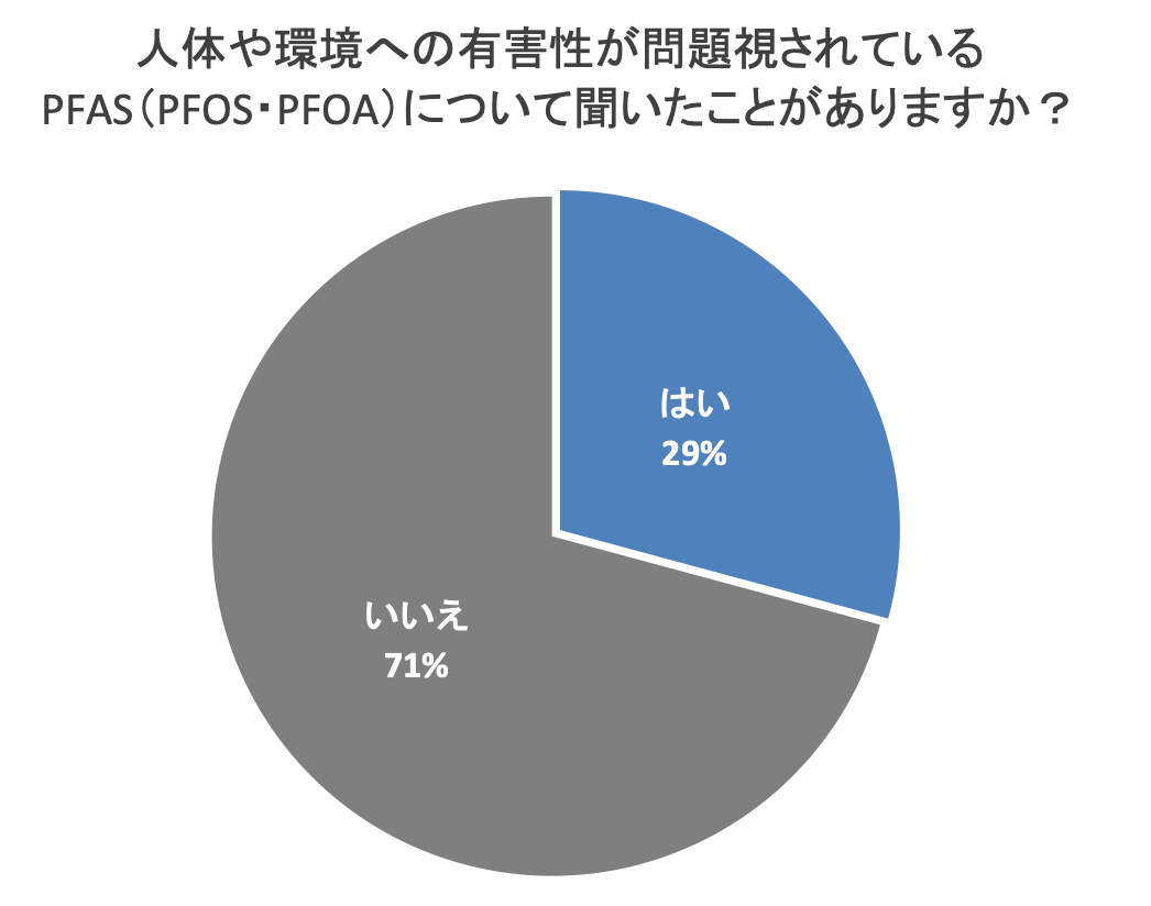 「PFAS(PFOS・PFOA)」の認知に関しては、約3割(146人)が「聞いたことがある」と回答。
