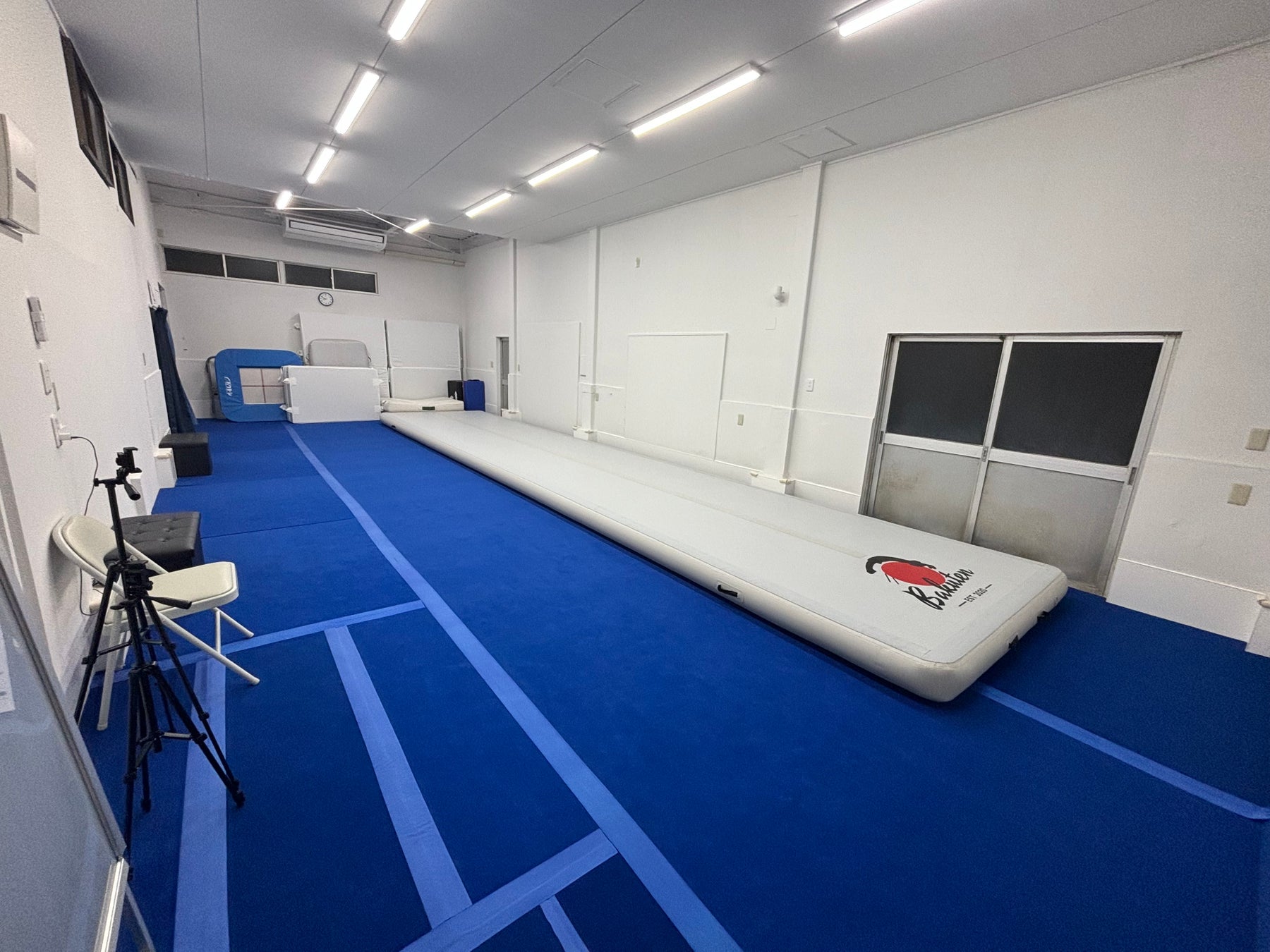 跳ねるマットを完備しています。バク転だけでなく、体操選手のように高く飛んで回ることが可能です。