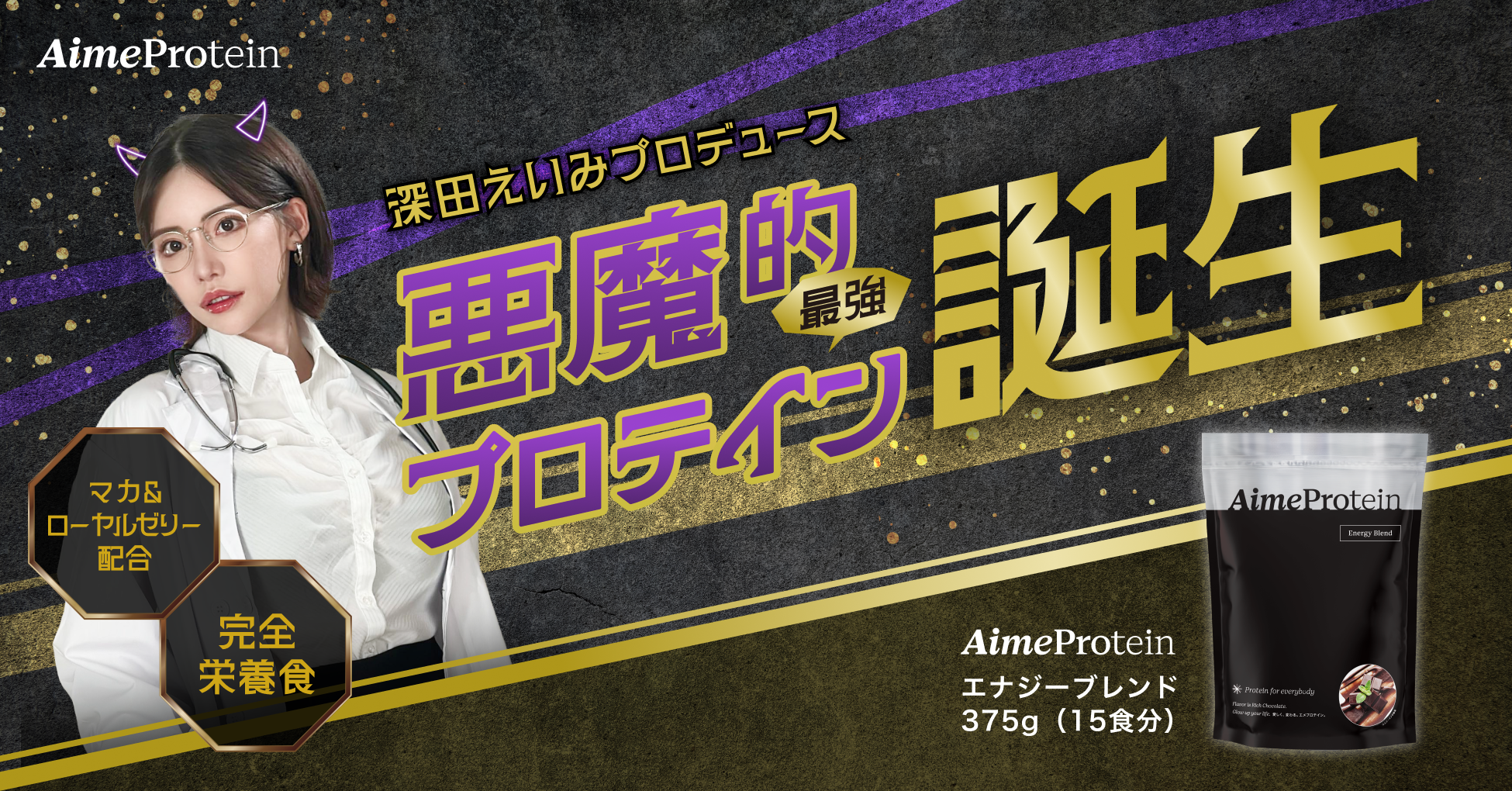 Aime Protein(エメプロテイン)は、プロデューサーの深田えいみ自身が過去に行った過度なダイエットの反省を活かし、「健康になりながら綺麗になる」ことを目指し開発したプロテインです。様々な方にお楽しみいただけるように開発した製品ではありますが、特に女性のお客様から親しまれてきました。既に展開している製品を愛用してくださる方々を大切にしながらも、より多くの方々に楽しんでいただける商品展開を目指し、この度男性にも気軽に手にとってもらいやすくなるような製品を開発いたしました。
