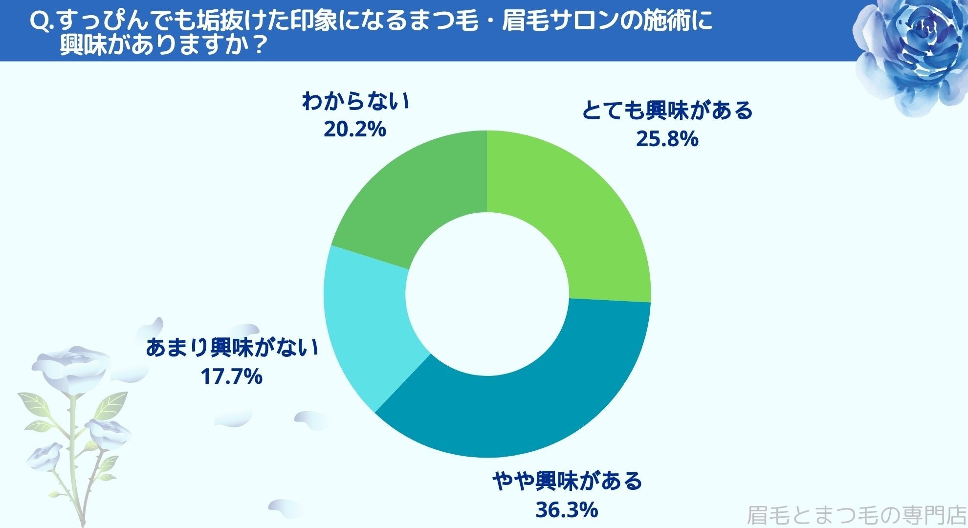 眉⽑とまつ⽑の専門店(眉⽑・まつ⽑サロンの紹介や⽿寄りな情報を記載しているサイト)が、アンケート調査をしました。