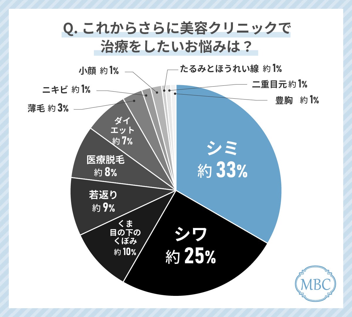 「これからさらに美容クリニックで治療をしたいお悩みは何ですか?」とアンケート調査した結果、