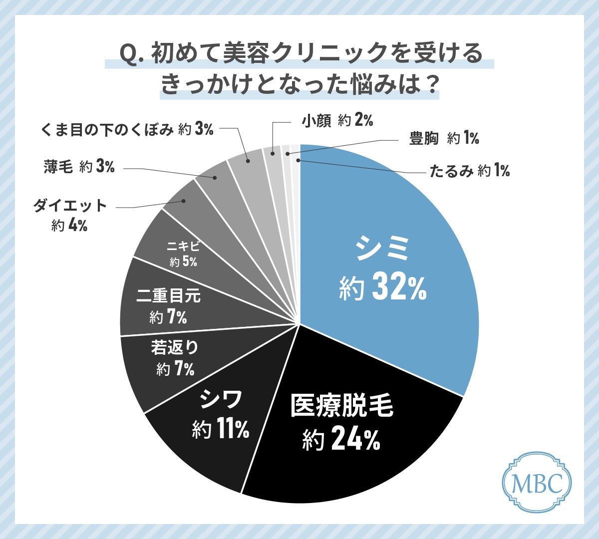 「初めて美容クリニックを受けるきっかけとなった悩みはなんですか?」とアンケート調査した結果、
