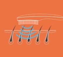 コーム部に搭載された、しなやかなメタルピンが頭皮に直接アプローチすることで、頭皮や顔などを優しく刺激し、頭皮への心地よい刺激が日々の疲れを癒し、心と体のリフレッシュにつなげます。