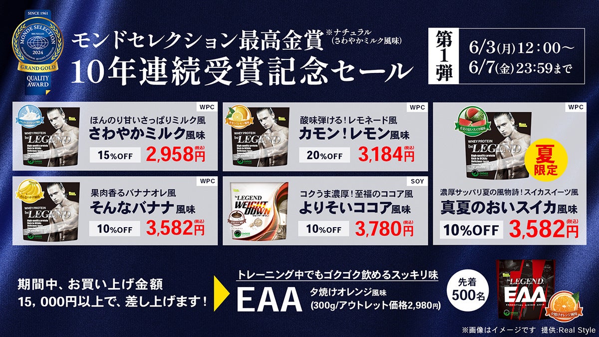 ビーレジェンドプロテインでは、モンドセレクション10年連続受賞を記念しセールが開催されます。