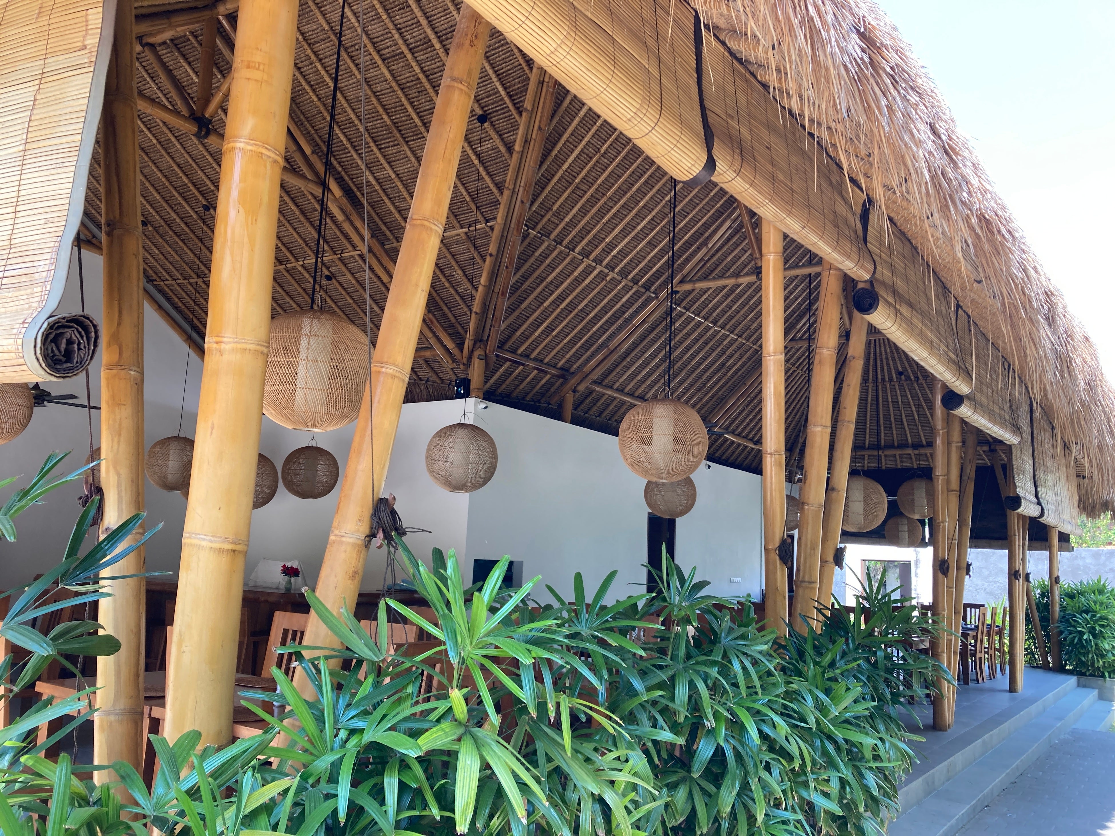 サヌールの賑わいのある通りから一歩足を踏み入れると、竹が生い茂るサヤンサヌールのヴィラリゾート内にカフェレストランがございます。オープンスタイルで天井の高い竹建築の店内には、常夏のバリの暑さを癒やしてくれる爽やかな風が通り抜け、心落ち着く空間とおもてなしで、ほっと一息つける憩いの場所となっています。こだわりの和スイーツやおうどんとともに、安らぎのひとときをお過ごしください。