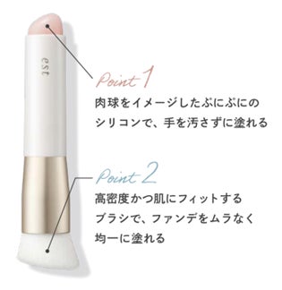 また、「エスト フローレス コンシーリング クリームファンデーション」の新発売と合わせて、エストのファンデーションを含む、エスト商品を11,000円(税込)以上お買い上げいただいた方に、肌にフィットしてファンデーションをムラなく均一に塗ることができる「エスト オリジナル ファンデーションブラシ」をプレゼント*2。手を汚さずにファンデーションが塗れる、肉球をイメージしたぷにぷにのシリコン面がついたエストオリジナルのブラシです。