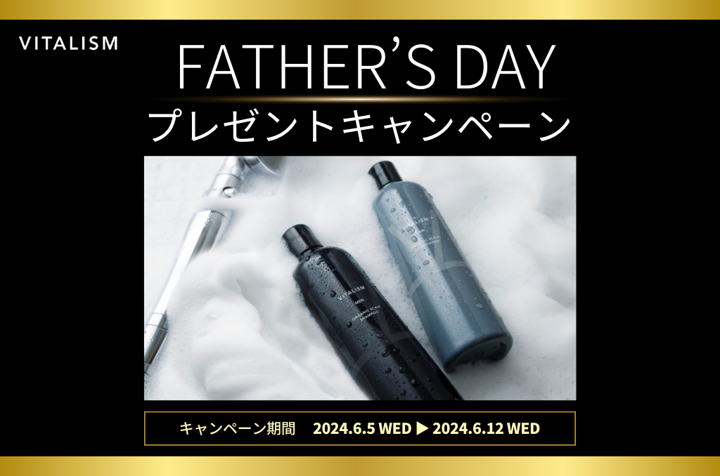「大切なお父さんにはいつまでも若々しくいてほしい!」そんな思いを伝えるなら、VITALISMのスカルプシャンプー&コンディショナーはいかがでしょう。 髪や頭皮のケアに熱心なお父さんにも、まだスカルプケアをはじめていないお父さんにも、喜んでもらえること間違いなしです。 VITALISMでは、2024年の父の日を記念して、抽選で3名様にスカルプシャンプー(350ml)&コンディショナー(350g)をセットでプレゼントいたします。