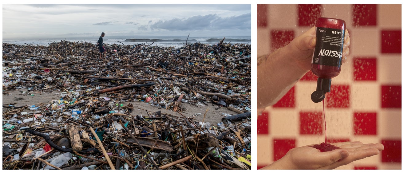 <化粧品業界で世界初の取り組み>ナチュラルコスメブランドLUSHのボトル容器    海洋プラスチックごみを未然に防ぐ活動で回収された再生素材に切替え
