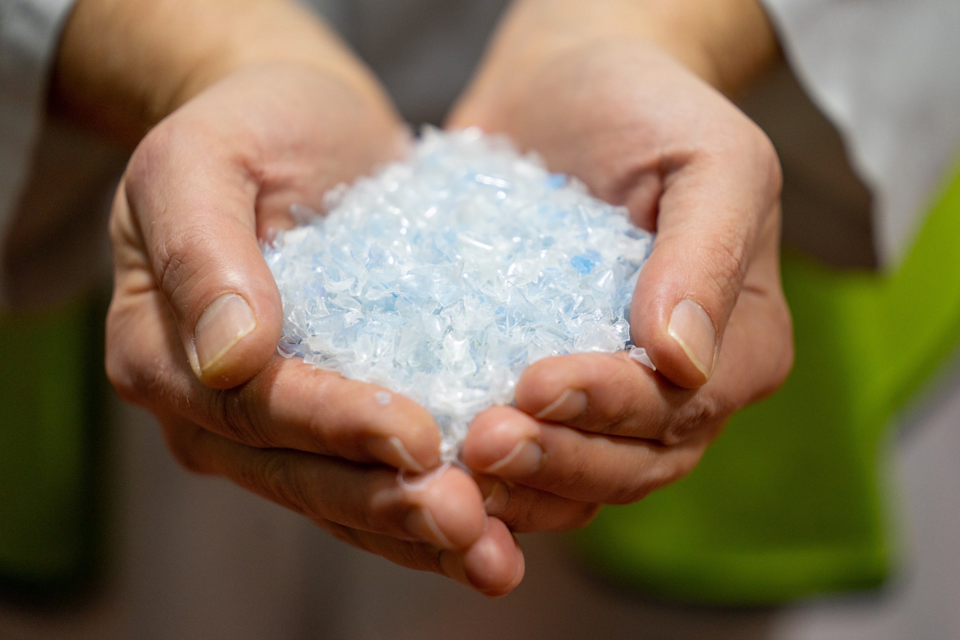 インドンネシアで収集されたボトルの平均として、1ボトル20グラムで計算。計量はPrevented Ocean Plastic™ 東南アジアサプライチェーンと協力して2023年7月に行われ、クリア/ライトおよびライトブルーのグレードの素材を含みます。蓋とラベルは含みません。