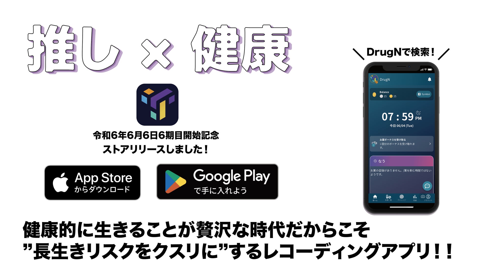 これによりユーザーは自身の健康の為に活用しているサプリメントや健康食品のうち、いくつかを自分のお気に入り商品として”推し商品”登録し管理することで、今後実装予定のヘルスケアデータクリエイターマーケットに参加することができます。「DrugN」は、服薬や使用時に貯まるポイントで「健康活動記録の商用利用の民主化」を目指したサービスを順次展開して参ります。