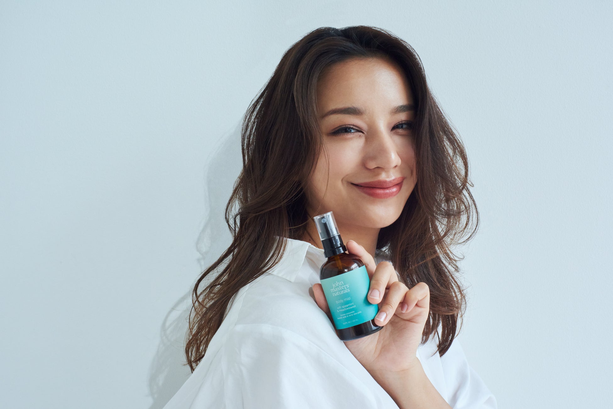 CanCamの専属モデルをしていた当時からオーガニックコスメを代表するブランドという印象。撮影時のスタイリングや自宅でのヘアケアまで愛用していました。以前から健康志向なところはありましたが、最近ではオーガニックについて詳しく知るようになり、食べ物やコスメも自然由来のものを選ぶようになりました。なによりも自分の調子が良くなることが選ぶ理由ですね。新製品のボディミストは爽やかでつんとしすぎない、やわらかな香りが使いやすかったです。普段から精油を使う機会が多く、特にミントの香りは好きなので、自身の生活にもフィットするなと思いました。