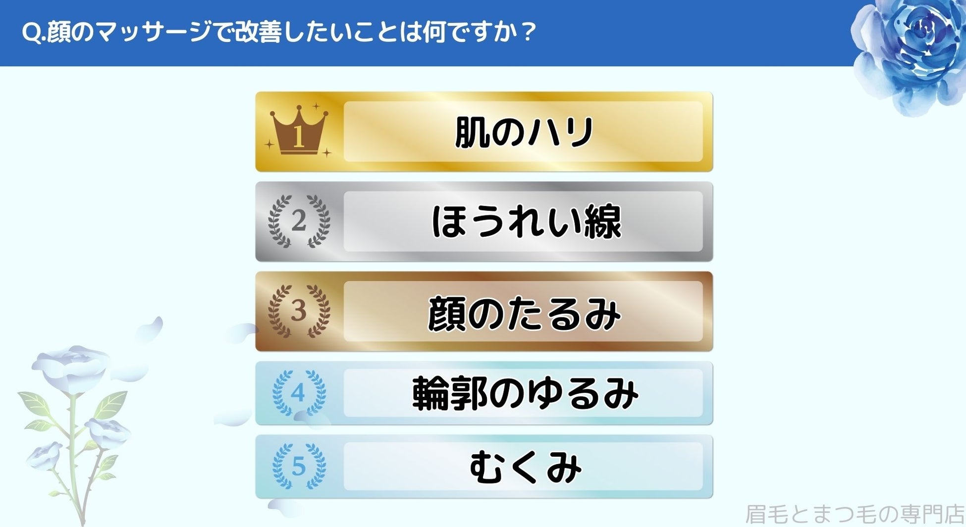 そこで今回の調査では、顔のマッサージで改善したいことについてアンケートを実施しました。ぜひ、参考にしてみてください。