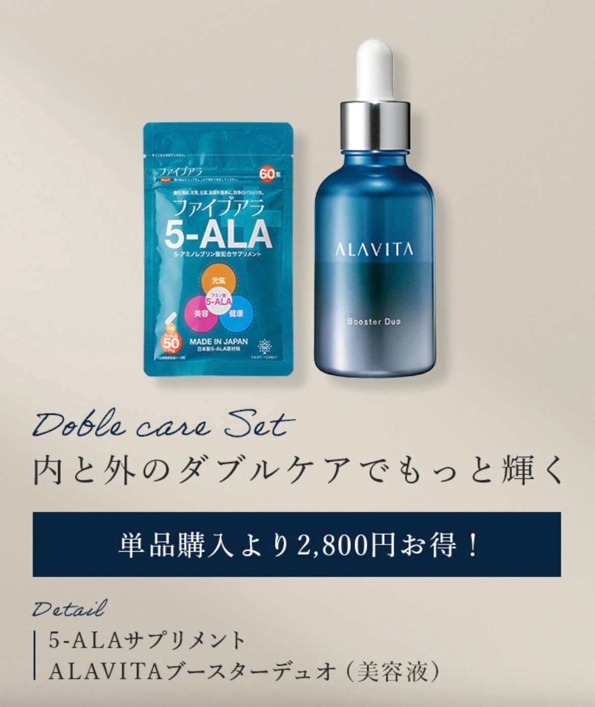 フェアリーフォレストの5-ALAで人気のサプリメントと美容液のセットをお届け!
