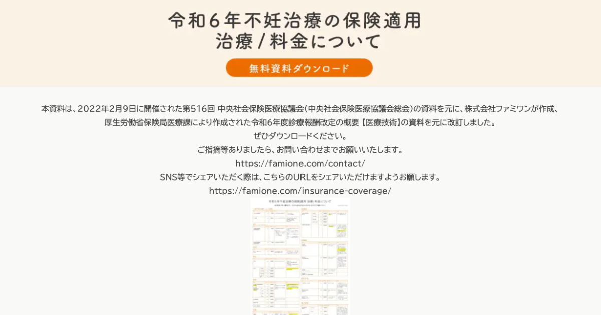 2022年4月からの保険適用開始に向け、2022年2月9日に中央社会保険医療協議会にて診療報酬が決定し、ファミワンとして2月10日には一覧表を無料公開いたしました。