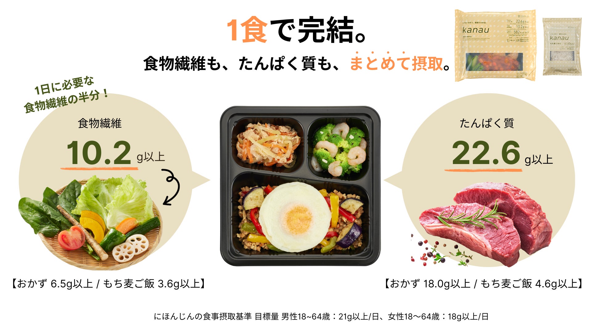 そこでおすすめなのが「kanau」です。「kanauは、管理栄養士が監修した冷凍弁当でPFCバランスが整っているだけでなく、たんぱく質と食物繊維がダブルで摂れるという特徴があります。これにより、必要な栄養を手軽に補給しながら、ダイエットに欠かせない食物繊維も一緒に摂取できます。