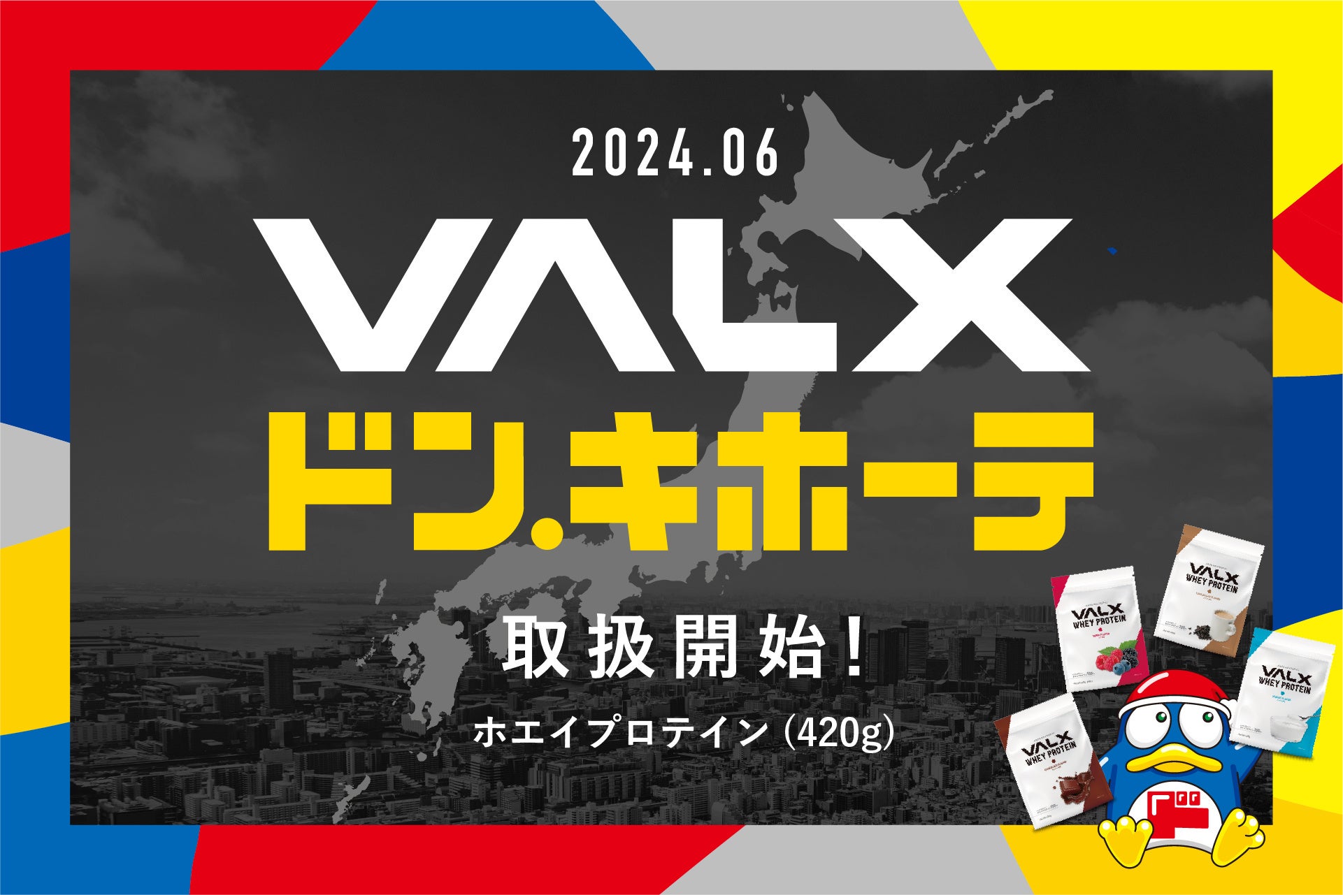 「前例のない熱狂を、しかける。」をミッションに掲げるレバレッジは、食料品や日用品はもとより、雑貨、衣料品、インテリア、家電など豊富な製品を取り扱う全国のドン・キホーテ系列店舗にてVALXの人気製品「VALX ホエイプロテイン 420g」の販売を開始いたします。