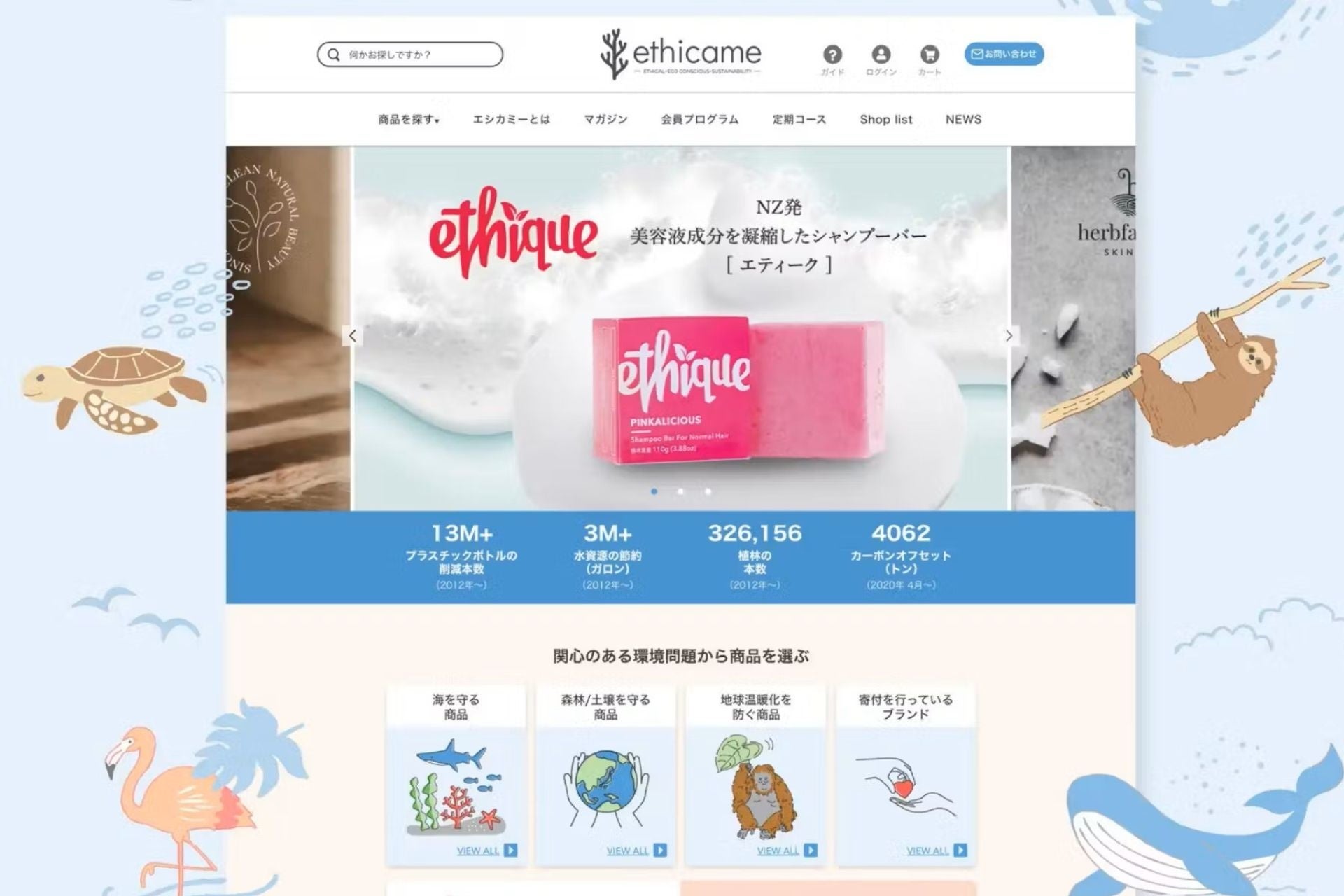 2019年からサステナブルなビューティーバーブランド「Ethique(エティーク)」の販売を開始し、独自の基準に沿った環境・社会・人に優しい製品を取り扱うECサイト「ethicame(エシカミー)https://ethicame.com/ 」をオープン。