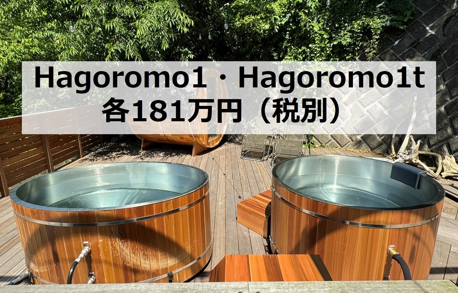 お客様からは「これだけのチラー水風呂に関わらず随分安い」とご評価をいただいておりましたが、Hagormo1tの発売記念、また今後さらなる水風呂文化の普及を願い、Hagoromo1・Hagoromo1tともに各181万円(税別)でご提供をさせていただくこととしました。