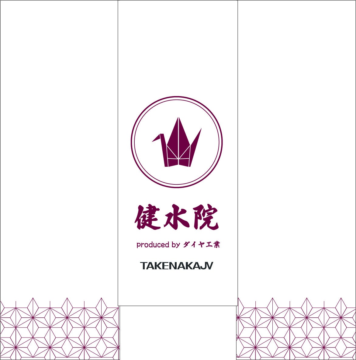 暖簾のデザインは、健康長寿として縁起の良い「鶴亀」の”鶴”から着想しました。建設技能者の疲れた心身を、ホッと一息つけるオアシスのような「健水院」で心身ともに癒していただくことで、「また頑張ろう」と心から活力が溢れ、健康寿命の延伸をサポートできる存在になるように願いを込めています。