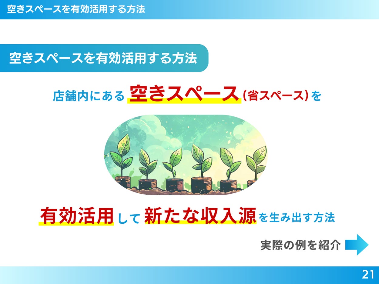 空きスペースの活用や新規開業を考えている方におすすめの内容です。