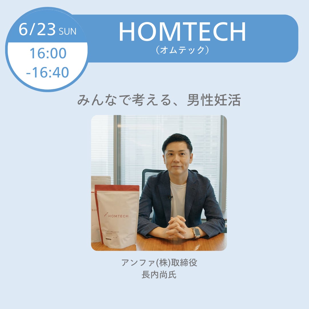 不妊の原因の半分は男性側にあり、Dクリニック東京で精液検査を受けた4人に1人の精液状態が芳しくないということがわかっています。だからこそ男性一人ひとりが「性」を自分事化し、リテラシーを高める必要があります。妊活を女性だけのものにせず、男性から「プレコンセプションケア」という概念を啓発できる社会づくりをしていきます。その取り組みの一環として、7月20日(土)、27日(土)には、リプロダクティブヘルスアワードの審査員である今井さい子(公認心理師)がパーソナリティーを務める、Podcast番組「30~40代女性の心のお悩み解決!今井さい子とゆみこの『それ、わかるー!!』」に、アンファー株式会社取締役の長内尚が出演します。番組内では、HOMTECH[オムテック]の開発背景や、男性妊活についてお話しています。