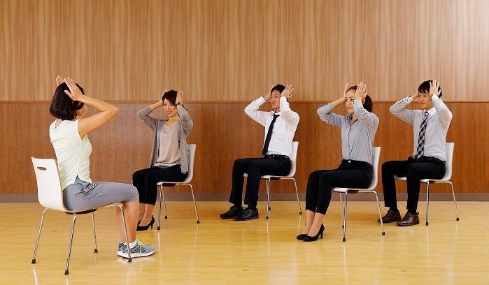 ・首肩、腰周辺のストレッチ、頭や目のセルフマッサージで体や眼精疲労を和らげます。