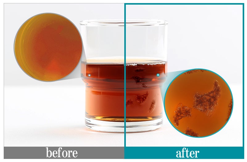 口内のたんぱく質汚れや細菌を、独自のカテキン成分で吸着し、除去します。これにより、口臭、虫歯、歯石、色素沈着などの根本的な原因であるたんぱく質汚れが排出され、継続的な使用によって口内を清潔に保ち、歯科疾患を予防します。