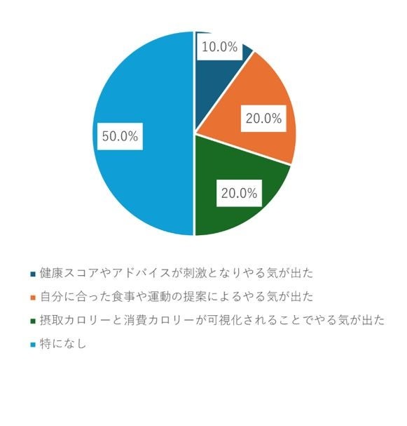 提携サービスによる健康スコアやアドバイス、自分にあったフィットネスコンテンツで「やる気が出た」という意見が半数以上となり、参加者にとって提携サービスが運動習慣化のきっかけになったことがうかがえました。