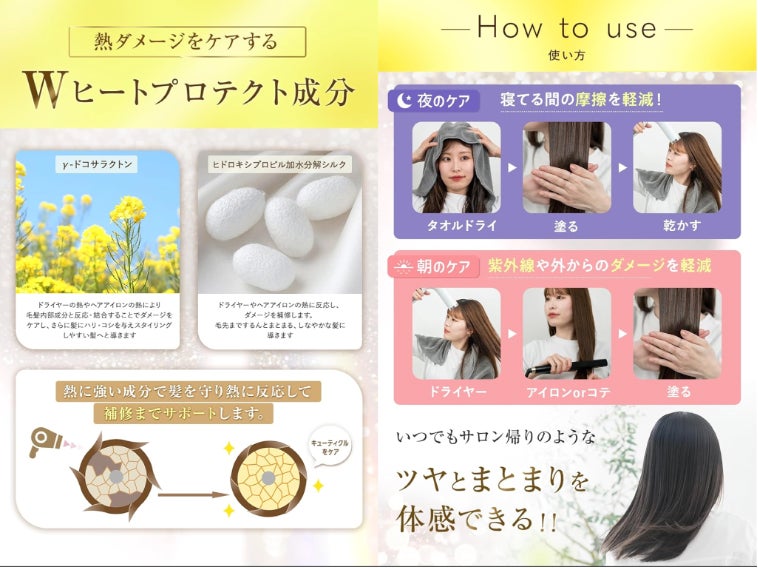 第一弾【ドライヤー前に特化した洗い流さないトリートメント(ヘアミルク)】の詳細はこちら