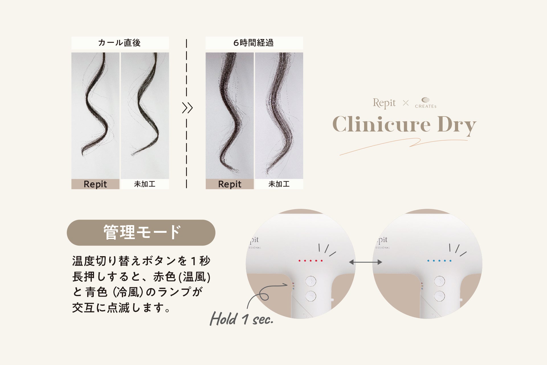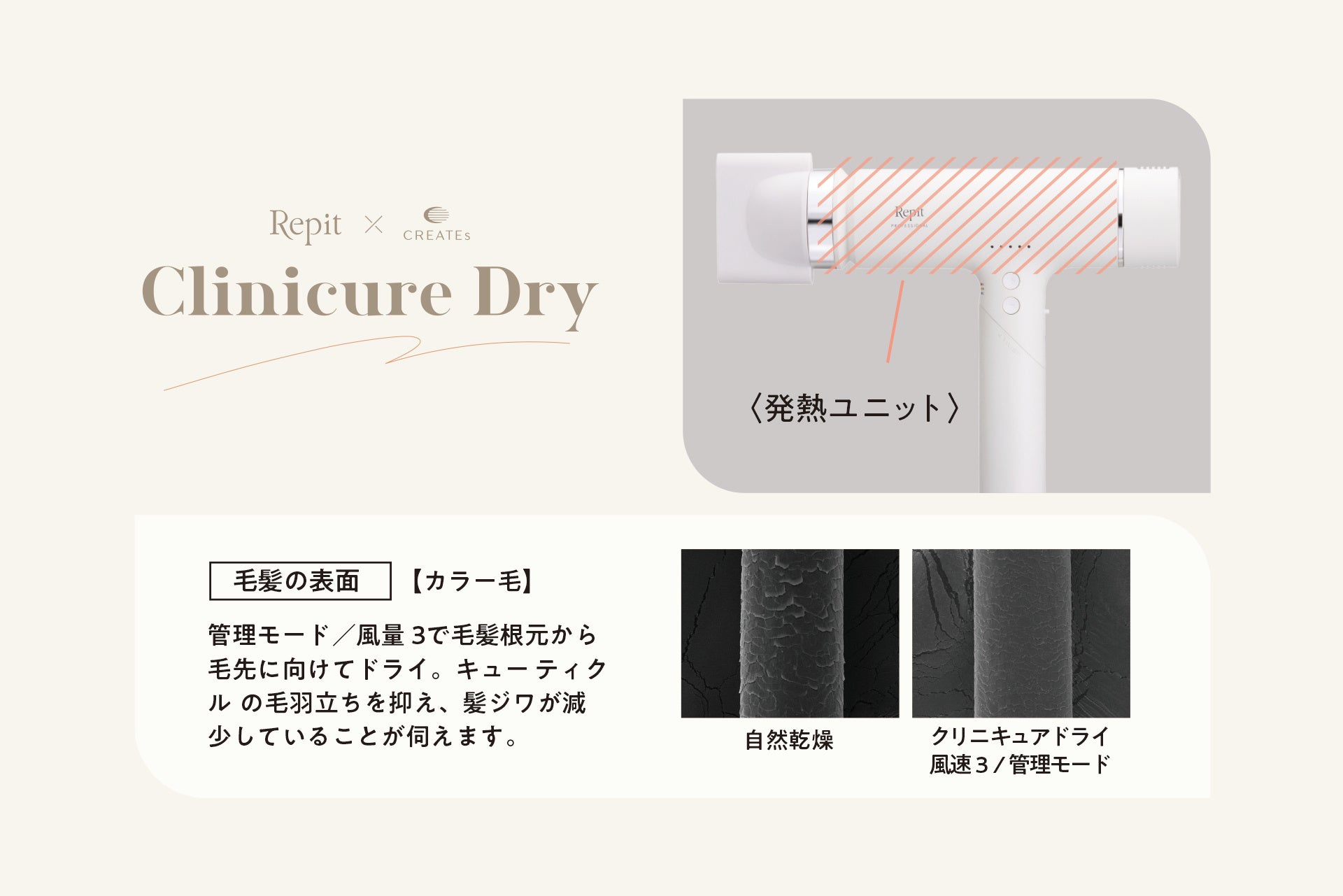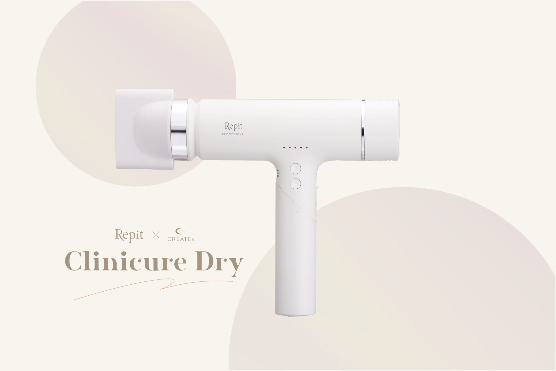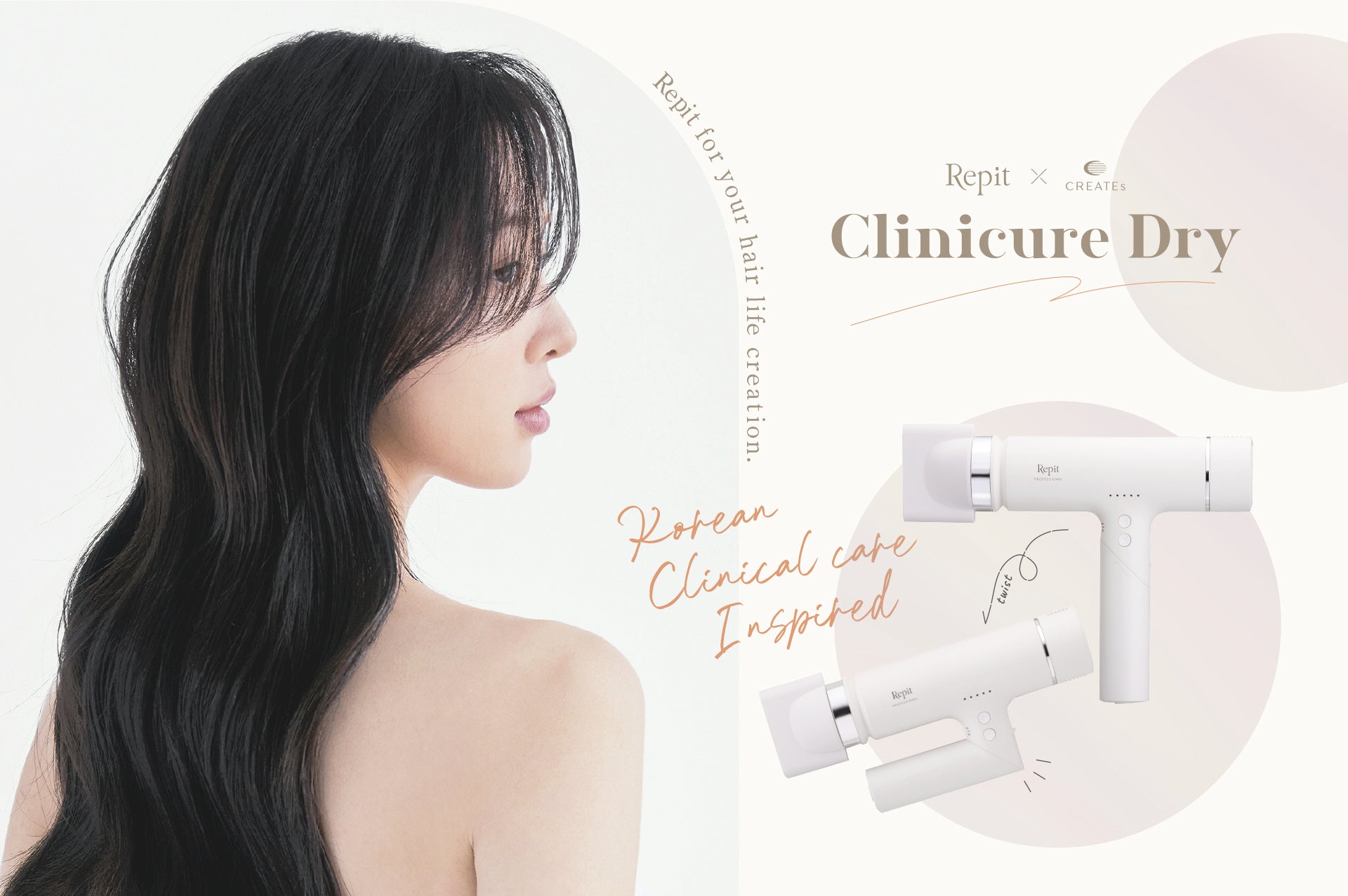 また、クレイツは、韓国のクリニカルケア意識にインスパイアされた“髪管理”ドライヤー「レピ クリニキュアドライ」を一般発売に先駆けて、6月17日(月)より一部サロンにて先行発売いたしました。「レピ クリニキュアドライ」の一般発売は、8月より全国にて順次開始いたします。
